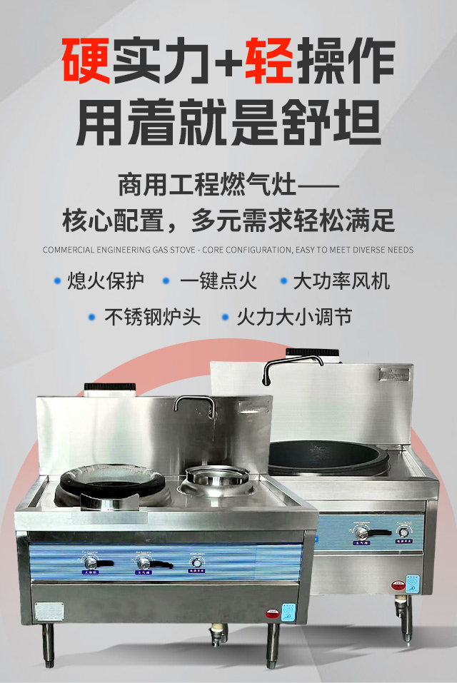 不锈钢灶体表面光滑,油污一擦即净,减少清洁操作步骤